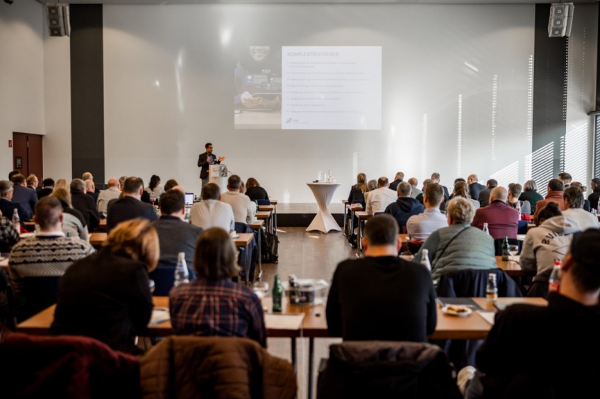 Ishan Markus Hegele, Gesamtprojektleiter DMS im ESH, präsentierte die Einführung der E-Akte mit dem Dokumentenmanagementsystem d.3. Sie schafft digitale Standards, ermöglicht papierloses Arbeiten und automatisierte Workflows. Mit SCRUM arbeitet das Projektteam transparent und iterativ auf den Rollout bis 2028 hin, der rund 6.000 Beschäftigte umfasst.